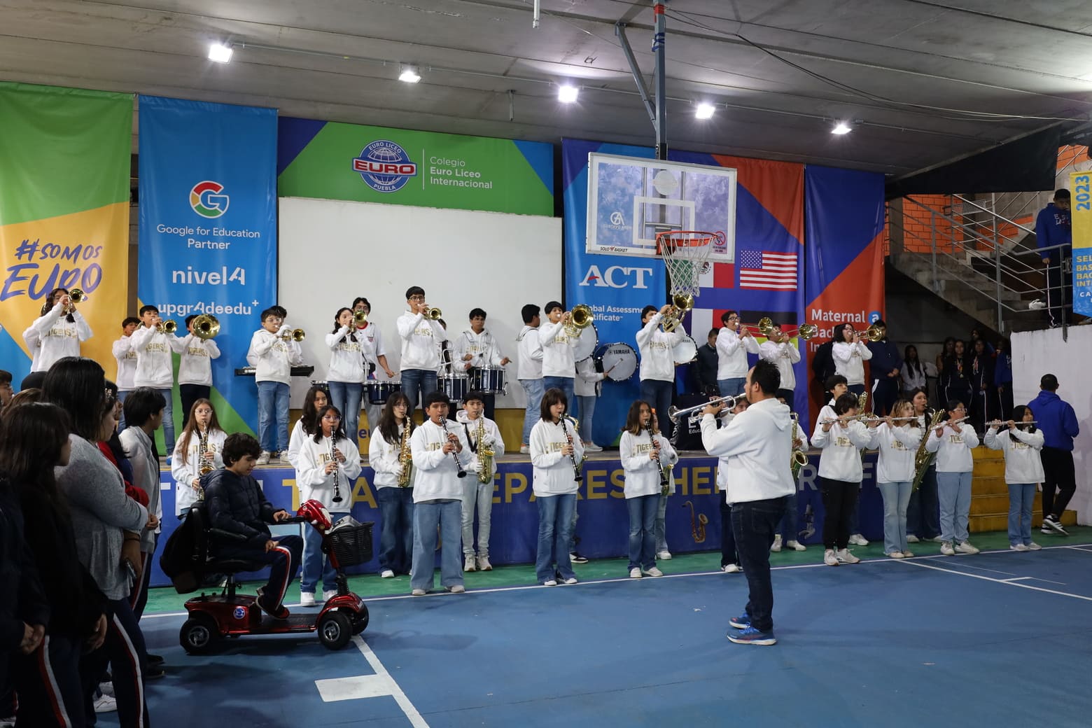 La jornada dio inicio con la vibrante energía de la Marching Band del Euro Liceo, cuya interpretación de melodías enérgicas creó un ambiente festivo y expectante, preparando el escenario para el reconocimiento a los campeones.