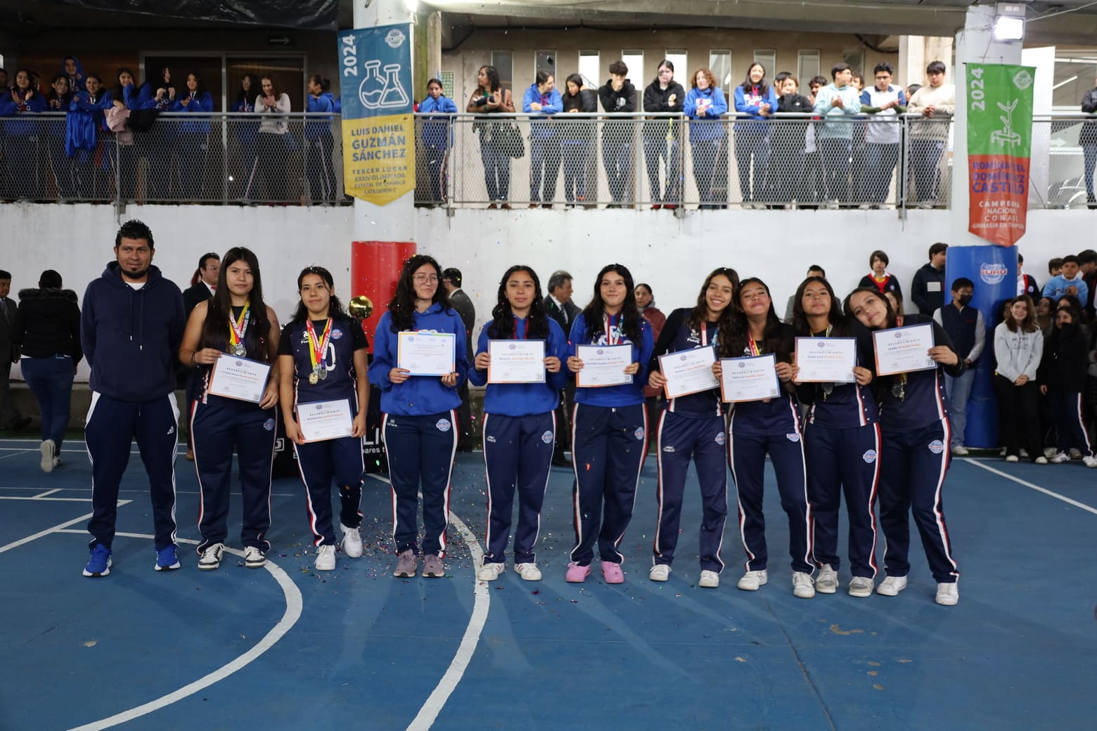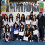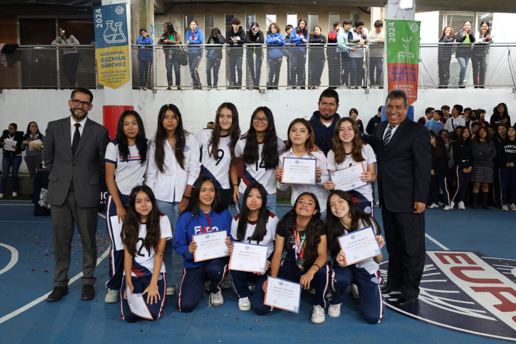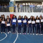 El programa de honores comenzó destacando el desempeño de la Selección Femenil de Volleyball de Secundaria. Las jugadoras Ximena Díaz Flores, Izabella Georgina Arenas Álvarez, Valentina Atla Ruiz, Valentina Belén Hernández Naranjo, Samanta del Castillo Farfán, Fernanda Rojas Murillo, Diana Lilibeth Desion Loza, Regina Guerra Alejandro, Camila García Alta, Aurora Rodríguez Cazares, Danna Isabella Roldán Cordero, Viviana del Carmen Pantoja Torres, y la capitana Tania Luz Portillo López, bajo la dirección del Entrenador Eder Antonio Mora Guerrero, demostraron un compromiso excepcional, obteniendo un meritorio Tercer Lugar tanto en la Liga de Evolución del IMEX como en la Copa Beato Fray Sebastián de Aparicio. El Director General, Lic. Salvador Figueroa Cruz, fue el encargado de entregar los merecidos reconocimientos, en medio de los aplausos de la comunidad escolar.