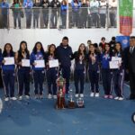 Continuando con las hazañas del volleyball, la Selección Femenil de Volleyball de Bachillerato Internacional tomó el centro del escenario. Integrada por Tania Luz Portillo López, Ximena Díaz Flores, Galia Verónica Sánchez Tapia, Frida Ximena García López, Nadia Itzel Portillo López, Fernanda Vanessa Morales Domínguez, Montserrat Casimiro Segura, Izabella Georgina Arenas Álvarez, Berenice Santiago Heredia, Jeamillet Sujaile Morales Trejo y la capitana Ayelen Alvarado Ortega, también bajo la tutela del Entrenador Eder Antonio Mora Guerrero, este equipo cosechó impresionantes victorias. Se coronaron con el Primer Lugar en la Copa Beato Fray Sebastián de Aparicio 2025 y nuevamente el Primer Lugar en el Campeonato del Torneo Tigres Blancos del Colegio Mundial. Además, mostraron su garra y determinación al obtener el Subcampeonato en los desafiantes Torneos de Interprepas UPAEP e Intercoles TV Azteca 2025. El Lic. Salvador Figueroa Cruz entregó los reconocimientos, culminando con el entrenador entregando los trofeos de campeonas a la Dirección General.