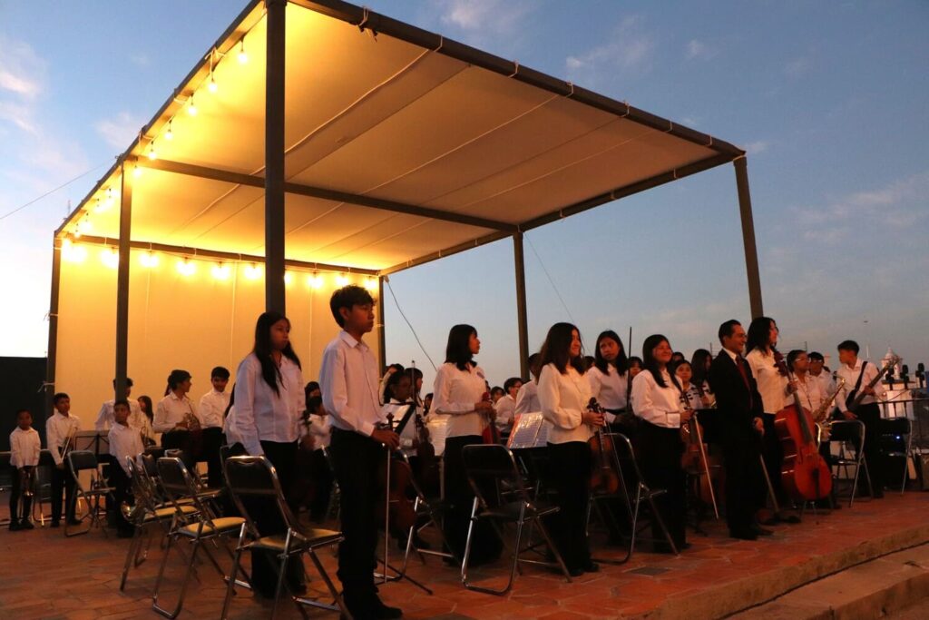 En el año 2024 la Banda Sinfónica participó en el “Campeonato mundial de Bandas de Conciertos WAMSB” en Costa Rica primer viaje Internacional en donde ganan medalla de bronce en su categoría y 5to lugar a Nivel Mundial en Bandas, es por ello que hoy el Colegio Euro Liceo quiso darles una Celebración especial por su 3er Aniversario, en donde a través de nuestro Convenio con el Palacio Julio Hotel ubicado en el Centro de Puebla, se presentó nuestra talentosa Banda Sinfónica Harmony conformada actualmente por 73 Alumnos en donde el pasado viernes 14 de Noviembre, en un escenario espectacular del Hotel como es su gran Terraza y llenos de emoción tocaron varias melodías que los hicieron recordar todos estos años de dedicación, experiencias y aprendizaje, dejando un recuerdo único en sus corazones y en el de todos los asistentes.